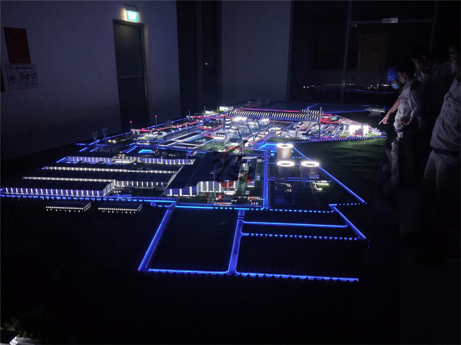 該廠區(qū)模型的設計與制作將充分利用現(xiàn)代化的模型表現(xiàn)手段、精細的制作工藝等,更加清晰直觀的展示在觀賞者面前。通過與貴公司的初步交流并結合項目部分資料,充分發(fā)揮我公司多年的多媒體互動模型制作經驗精心制作, 最終將完美呈現(xiàn)。 A、在17平方米范圍內真實展現(xiàn)綠色鋼廠和循環(huán)經濟,以及廠區(qū)建設的方方面面。包括:辦公區(qū)、廠區(qū)、生活區(qū)及地形地貌、自然環(huán)境等。 B、分時段設置廠區(qū)展示模型的演示程序。即:通過模型動態(tài)模擬手段、內外部燈光配合協(xié)調、多媒體介紹等,營造廠區(qū)模型白晝、夜晚不同時段的風景及演示程序。 C、通過合理的構造設計、整體布局營造模型自身的協(xié)調和出眾的演示效果。包括:在模型中營造生產流程、循環(huán)經濟、節(jié)能環(huán)保、資源深度利用等工藝。 D 、利用各種高科技附件的運用,包括:動態(tài)、多媒體、升降系統(tǒng)、燈光系統(tǒng)輔助展示,不僅使得模型本身的展示更加清晰;同時這些高科技附件的應用進一步增強了模型品位,大大提高了模型的檔次。 E、模型外部的系列裝置與模型沙盤統(tǒng)一風格,包括展示廳裝修、燈光、展示廳其它展品之間的協(xié)調,營造整個展示廳渾然一體的風格。