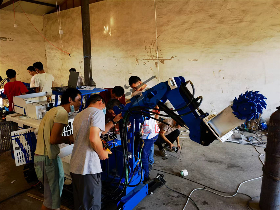 (3)巷道修復(fù)機(jī)器人:①機(jī)械臂伸展到預(yù)定位置→②銑挖頭旋轉(zhuǎn)→③機(jī)械臂按照預(yù)定軌跡上下運動→④機(jī)械臂回轉(zhuǎn)10°→重復(fù)①-④